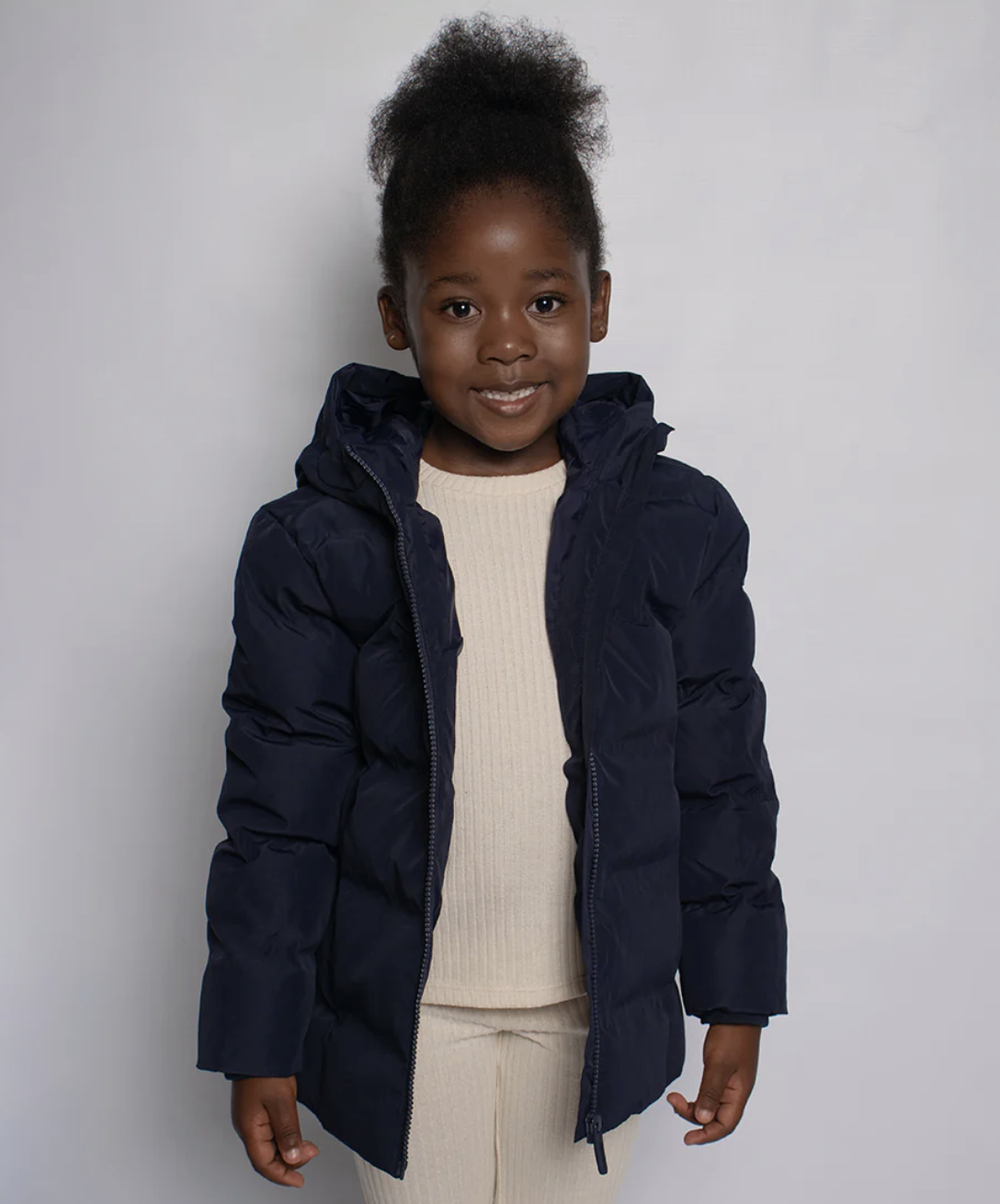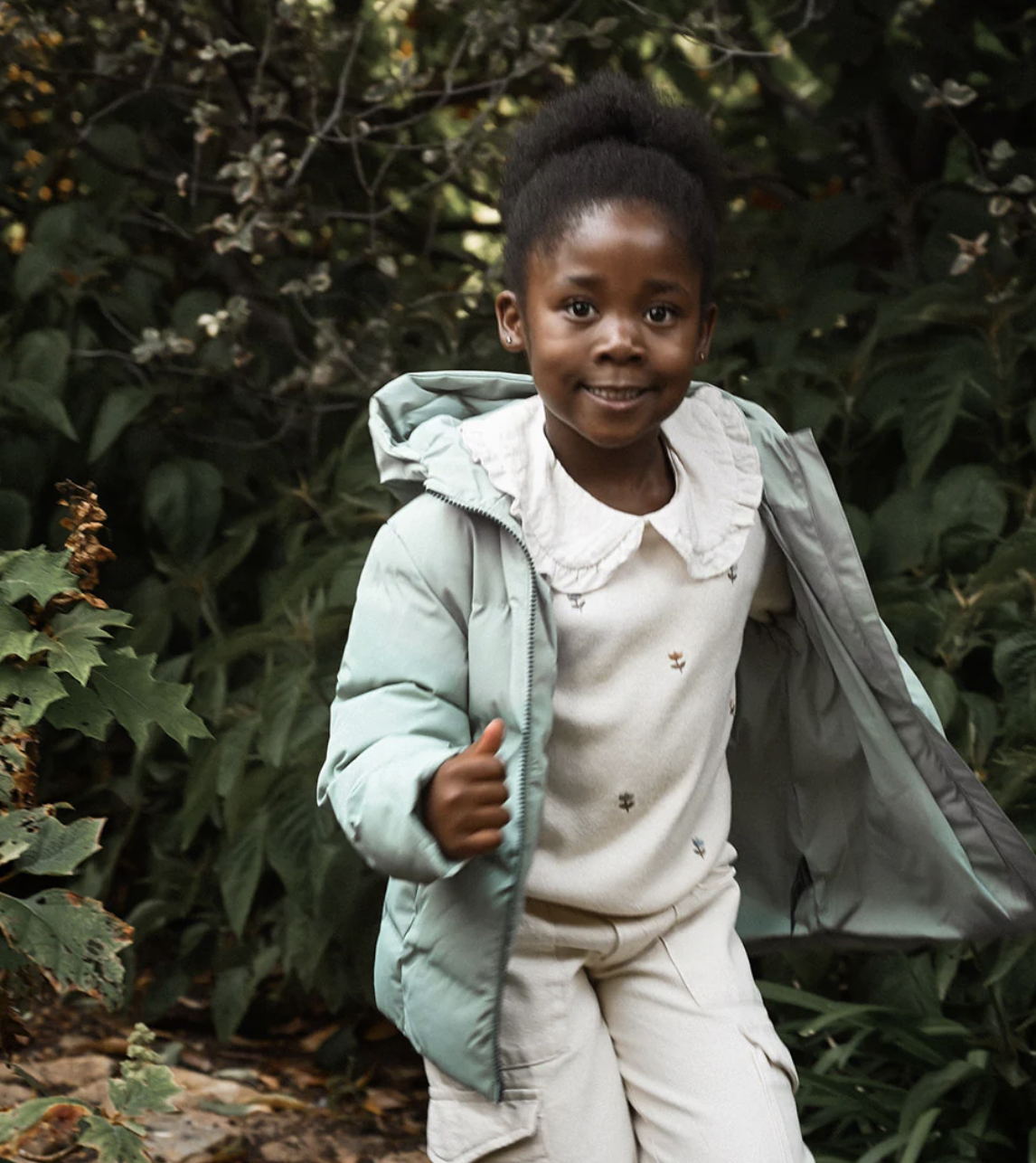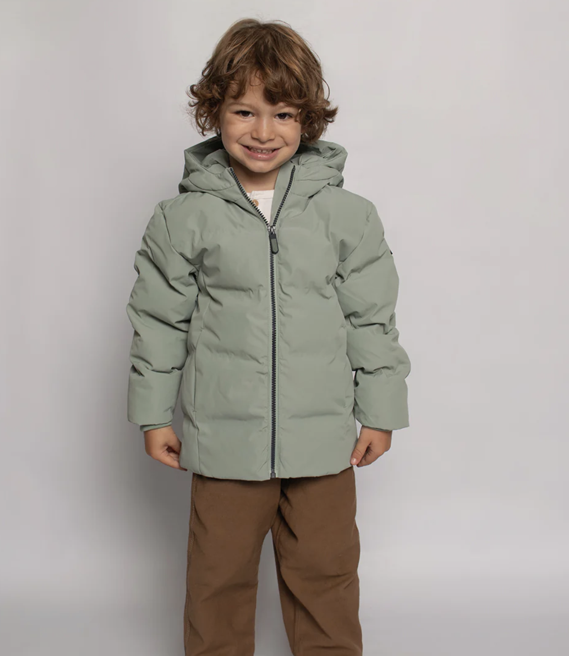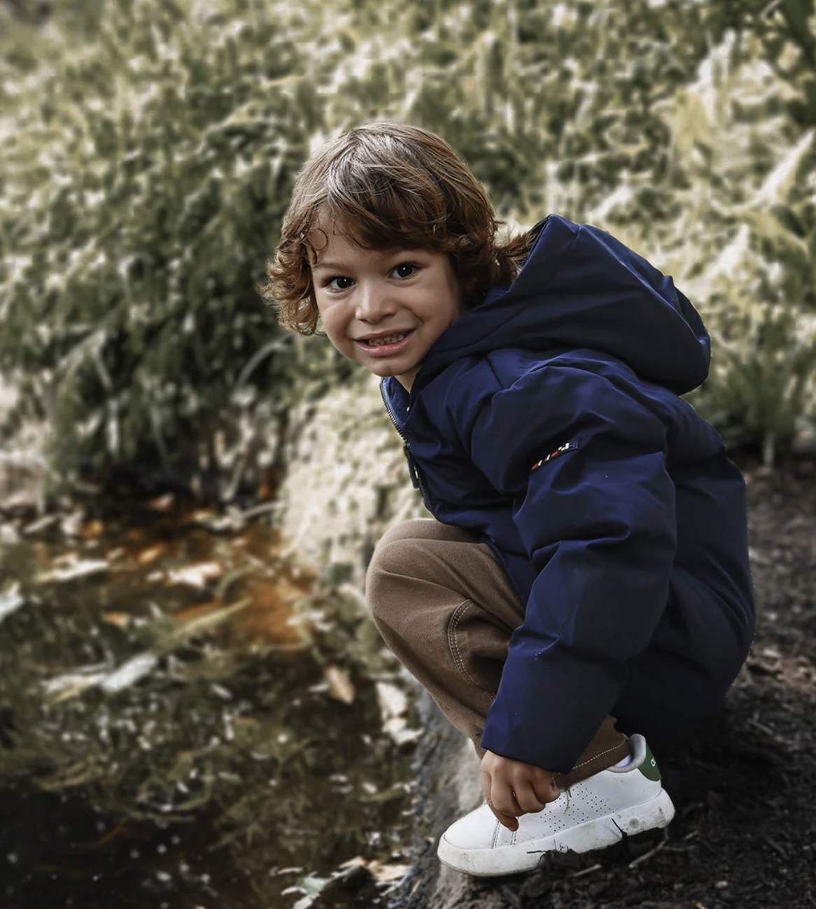 This waterproof down jacket is the go-to garment to keep children warm and protected from wintry elements. 100% waterproof (10’000 mm water rating) and designed to withstand temperatures as low as -5°C. It combines functionality with a modern and simple cut, perfect for everyday wear. It features concealed windproof cuffs, which help retain heat and prevent drafts. It also has two zippered side pockets, ideal for safely storing small items or keeping hands warm.
